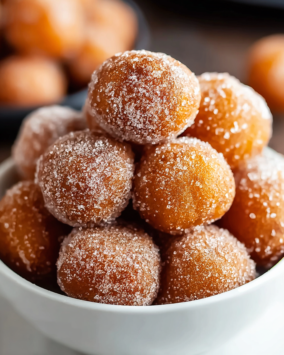 While these doughnut holes are traditionally fried for that signature crispness, you could try baking them as a healthier alternative, but expect a different texture—less crispy and more cake-like.