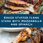 This Baked Stuffed Flank Steak recipe features tender flank steak butterflied and stuffed with a flavorful mixture of mozzarella cheese, spinach, and sun-dried tomatoes. Baked to perfection and finished under the broiler for a golden crust, this savory dish is perfect for an impressive yet easy dinner for four.