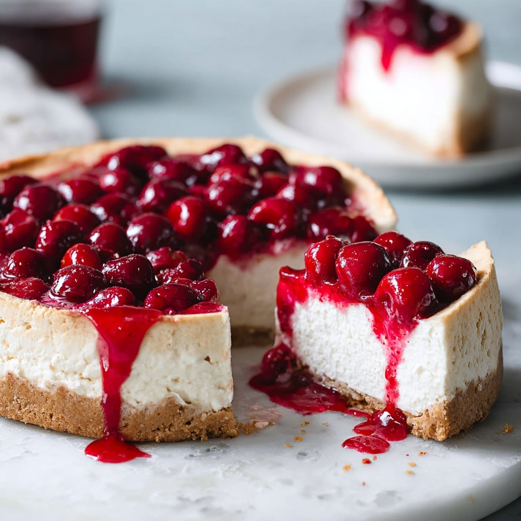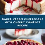 This vegan baked cheesecake features a creamy cashew and soy yogurt filling atop a buttery vegan crust, complemented by a vibrant cherry compote. Perfect for those seeking a dairy-free, plant-based dessert that’s rich, smooth, and bursting with fruity flavor.