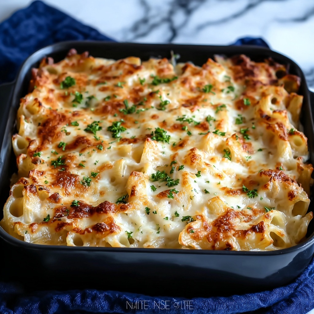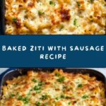A comforting and cheesy baked ziti recipe featuring savory Italian sausage, tender pasta, and a rich tomato marinara sauce topped with melted mozzarella and Parmesan cheese. Perfect for an easy, satisfying Italian-American dinner.