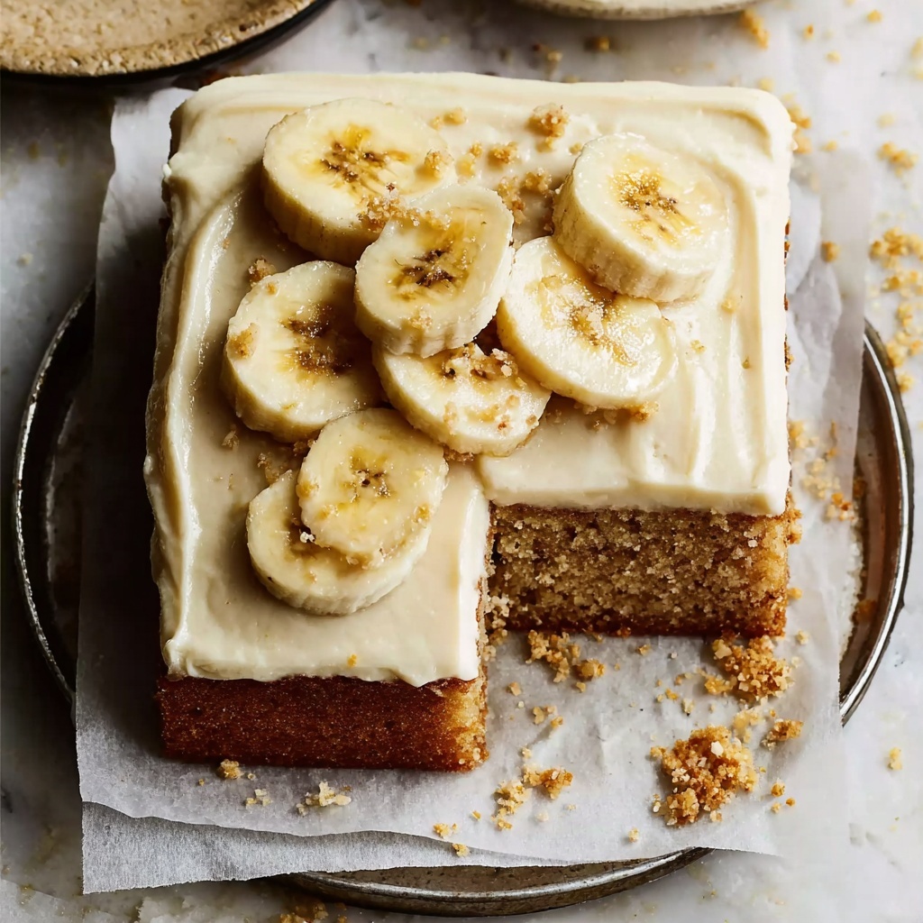 For a festive touch, cut the cake into fun shapes using cookie cutters or serve individual portions in mason jars with frosting layered between cake pieces. You could also add fresh banana slices or edible flowers on top for a charming and elegant look.