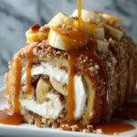 This Banana Caramel Roll Cake is a delightful dessert featuring a soft, banana-infused sponge cake rolled with whipped cream and fresh banana slices, topped with a luscious homemade caramel sauce. Perfectly moist and tender with a balance of sweet and creamy flavors, it makes a stunning treat for any occasion.