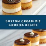 Delight in these Boston Cream Pie Cookies, featuring a soft yellow cake base filled with creamy vanilla pudding whipped cream and topped with a rich chocolate ganache. Perfect mini treats that capture the classic Boston Cream Pie flavors in a convenient cookie form.