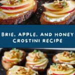 These Brie, Apple, and Honey Crostini are an elegant and easy appetizer that combines creamy melted brie, sweet apple butter, fresh apple slices, and crunchy candied pecans drizzled with honey atop toasted baguette slices. Perfect for entertaining or a sophisticated snack.