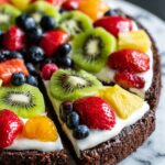 This Brownie Fruit Pizza is a delightful and visually stunning dessert combining a rich, fudgy brownie base with a creamy vanilla cream cheese topping and an assortment of fresh, colorful fruits. Perfect for parties or special occasions, it offers the perfect balance of indulgent chocolate and refreshing fruit flavors.