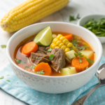 Caldo de Res is a traditional Mexican beef and vegetable soup, rich in flavor and perfect for a comforting meal. Slow-cooked beef shank or short ribs create a savory broth infused with onions, garlic, and fresh vegetables including corn, carrots, zucchini, potatoes, chayote, and cabbage. Garnished with fresh cilantro and served with lime wedges and warm corn tortillas, this hearty soup is a wholesome family favorite.