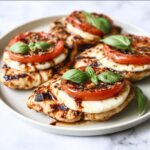 This Caprese Chicken recipe is a delightful blend of Italian flavors featuring tender grilled chicken breasts topped with fresh mozzarella, ripe tomatoes, aromatic basil leaves, and a drizzle of aged balsamic glaze. Ready in just 25 minutes, this dish offers a perfect balance of savory seasonings and fresh ingredients, making it a quick and elegant meal for any occasion.