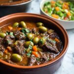 Just before serving, stir in the sliced olives and chopped cilantro. These finishing touches add a wonderful contrast—the olives bring a briny pop, while the cilantro offers a fresh, herbal lift, balancing out the rich, earthy stew.