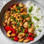 Cashew Chicken is a delicious and flavorful stir-fry dish featuring tender bite-sized chicken pieces cooked with crunchy cashew nuts and vibrant vegetables in a savory-sweet sauce. This quick and easy family favorite comes together in just 30 minutes, making it perfect for a satisfying weeknight dinner served over rice or noodles.