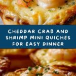 For a stunning appetizer spread, arrange your Cheddar Crab and Shrimp Mini Quiches Recipe on a wooden serving board surrounded by lemon wedges, fresh herbs like dill or chives, and small bowls of cocktail sauce or aioli for dipping. This presentation invites your guests to dig in and savor the flavors in style.