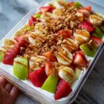 This Cheesecake Fruit Salad is a delightful and creamy dessert combining fresh, vibrant fruits with a luscious cheesecake-flavored filling. With a smooth cream cheese and whipped cream mixture drizzled generously with caramel sauce, it offers a perfect balance of sweetness and tang. It’s easy to prepare and perfect for refreshing summer gatherings, potlucks, or as a light dessert.