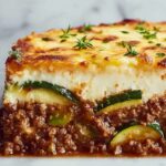 This Cheesy Beef & Zucchini Casserole is a hearty, comforting dish combining savory ground beef, tender zucchini, and a blend of melted mozzarella and cheddar cheeses. Enhanced with aromatic herbs and a creamy tomato-infused sauce, it’s an ideal family-friendly meal that comes together quickly with a simple stovetop sauté and oven bake.