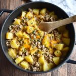 A comforting and hearty one pot meal combining savory ground beef, tender potatoes, and melted cheddar cheese all cooked together in a skillet for an easy and flavorful dinner in just 40 minutes.