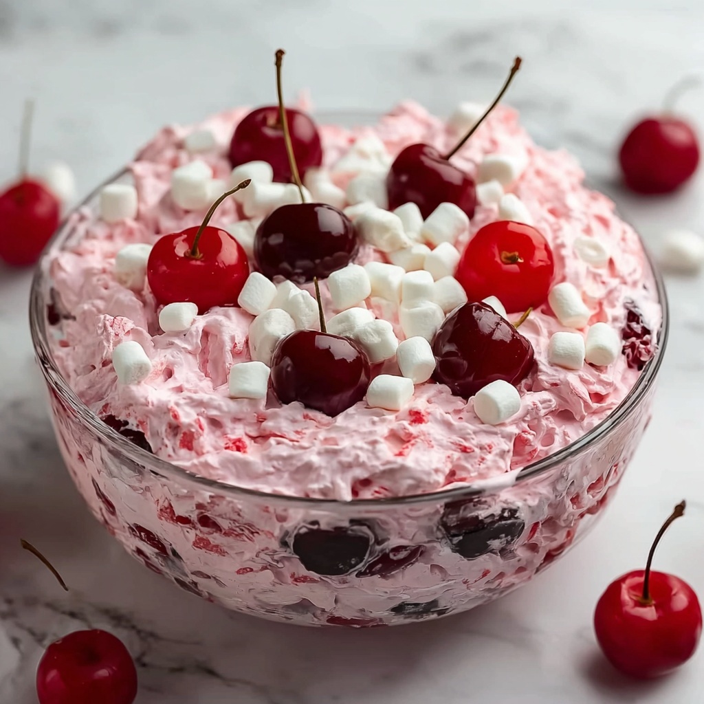 Adding fresh garnishes like a handful of mini marshmallows or a sprinkle of bright red cherries not only enhances the visual appeal of the Cherry Fluff Dessert Recipe but also adds subtle bursts of fresh texture. A small drizzle of cherry syrup can also give an extra pop of sweetness and gloss.