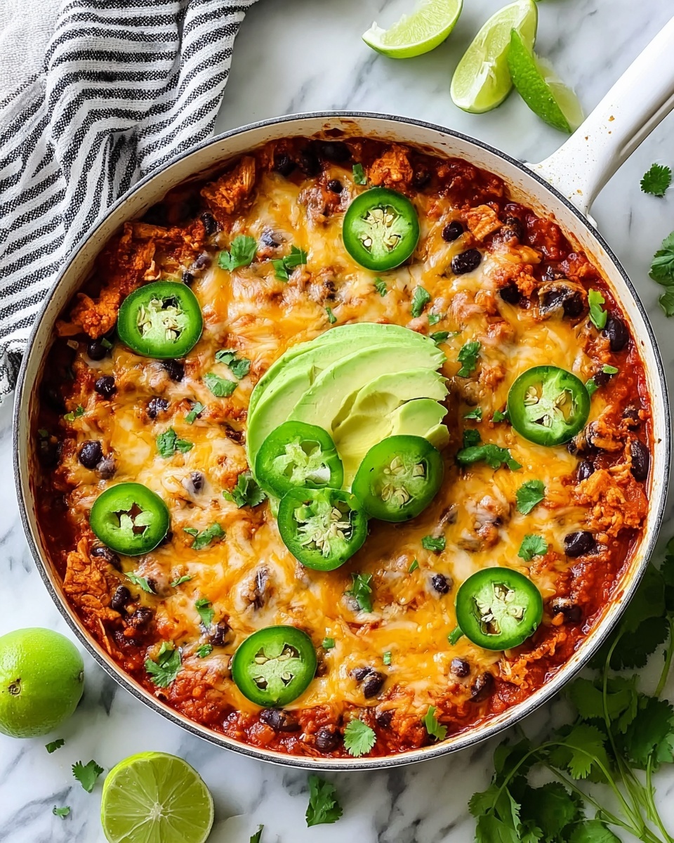 If you want to impress your guests, serve this skillet alongside warm flour or corn tortillas, letting everyone assemble their own enchilada-style scoops. Alternatively, spoon the mixture over a bed of cilantro-lime rice and sprinkle extra cheese and toppings on top. Turning it into tacos or burrito bowls offers fun versatility for family dinners.