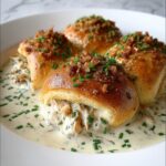 If you have been searching for a comforting yet elegant dish to wow your family or guests, then look no further than this Chicken Pillows with Creamy Parmesan Sauce Recipe. Imagine tender shredded chicken enveloped in golden, buttery crescent dough pillows, perfectly paired with a luscious, velvety Parmesan sauce that’s bursting with rich flavor. Every bite is a delightful blend of savory fillings and creamy sauce, making it a meal that feels both special and unbelievably satisfying. This recipe is simple enough for a weeknight dinner but impressive enough for entertaining, and it’s guaranteed to become a favorite in your kitchen.