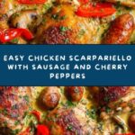 Chicken Scarpariello is a classic Italian-American skillet dish featuring bone-in chicken thighs simmered with sweet Italian sausage, vibrant bell peppers, and tangy pickled cherry peppers. This flavorful and hearty recipe combines seared chicken and sausage with a savory sauce made from white wine, chicken broth, and red wine vinegar, enhanced with garlic and herbs. Perfect for a comforting dinner, it pairs beautifully with crusty bread, roasted potatoes, or pasta.