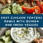Delicious and refreshing Chicken Tzatziki Bowls featuring grilled seasoned chicken breasts served over a bed of quinoa or rice, fresh vegetables, Kalamata olives, and a creamy homemade tzatziki sauce. Perfect for a healthy Mediterranean-inspired meal that’s easy to prepare in under 30 minutes.