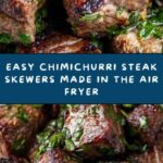 6. Serve: Remove the skewers from the air fryer and immediately brush them with some of the reserved chimichurri sauce. Serve the remaining sauce on the side for dipping. Enjoy the skewers warm.