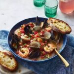 Freezing this seafood stew is possible, but it’s best to freeze it before adding delicate shellfish like clams and mussels to avoid texture changes. You can freeze the broth and more robust seafood such as cod and shrimp separately in freezer-friendly containers for up to 2 months. Thaw slowly in the fridge and add the shellfish fresh when reheating.