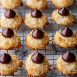 Delight in these chewy Coconut Blossom Cookies featuring sweetened shredded coconut combined with whipped egg whites for a light texture, finished with a classic Hershey Kiss pressed into each cookie for a perfect chocolaty touch. Easy to prepare, these treats bake to golden perfection and offer a delightful blend of flavors and textures.