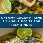 A vibrant and creamy Coconut Lime Fish Soup featuring tender white fish simmered in a fragrant broth of coconut milk, lime, garlic, ginger, and turmeric. This easy-to-make soup combines tropical flavors with a hint of spice, perfect for a light and refreshing meal.