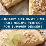 The perfect garnish can turn a great dessert into a memorable one. For this Coconut Lime Tart Recipe, whipped cream is the classic choice, adding light, airy sweetness that balances the tangy filling. Toasted coconut flakes not only provide texture but intensify the coconut flavor, making every bite a delightful experience. For an extra pop, you might add thin lime slices or fresh mint leaves to brighten the presentation.