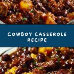 This hearty Cowboy Casserole combines ground beef, sautéed vegetables, beans, and tomatoes seasoned with a flavorful taco blend, topped with melted cheddar and crispy corn chips. It’s a comforting, one-dish meal perfect for family dinners that delivers savory Tex-Mex flavors with a satisfying crunch.