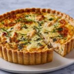 This Crab and Tarragon Tart is a savory and elegant dish featuring a buttery pre-made tart crust filled with a creamy mixture of fresh crab meat, sautéed onions, garlic, fresh tarragon, and Gruyère cheese. Baked to golden perfection, it’s a delightful recipe perfect for a brunch, appetizer, or light main course, offering a rich blend of flavors and textures that seafood lovers will appreciate.