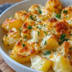 Once out of the oven, give the potatoes a few minutes to rest. This helps the sauce thicken slightly and makes serving easier, so you get the perfect creamy texture in every scoop.