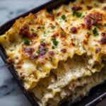 This Creamy Garlic Butter Shrimp Scampi Lasagna combines succulent shrimp cooked in a garlic butter sauce with layers of creamy ricotta, mozzarella, Parmesan cheese, and tender lasagna noodles. Infused with fresh lemon zest and parsley, this unique seafood twist on traditional lasagna is rich, flavorful, and perfect for a comforting yet elegant meal.