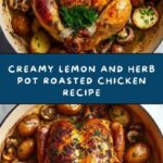 This Creamy Lemon and Herb Pot Roasted Chicken recipe combines a perfectly roasted whole chicken infused with fresh lemon, garlic, and herbs, cooked slowly in a Dutch oven with creamy white wine sauce and tender baby potatoes. It’s a comforting, flavorful dish that’s perfect for a family dinner or special occasion.