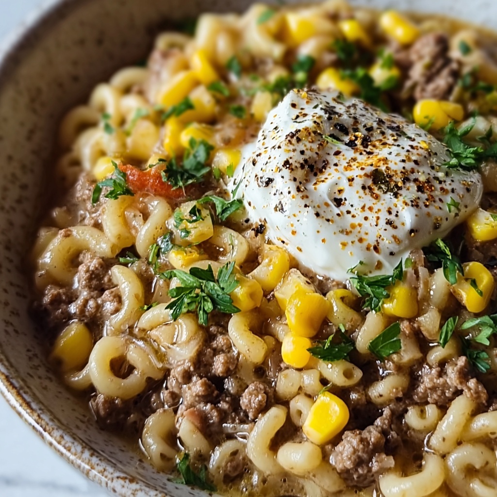 Next, fold the drained pasta and sweet corn into the creamy beef sauce. Stir gently to coat the pasta completely with that luscious ranch goodness. Cover the skillet and let everything cook together for another 3 to 5 minutes on low heat, so the pasta can soak up the flavors while the corn stays sweet and tender.