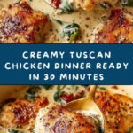 Creamy Tuscan Chicken is a rich and flavorful dish featuring tender chicken breasts simmered in a luscious Parmesan and heavy cream sauce with sun-dried tomatoes, garlic, and spinach. This easy 30-minute recipe is perfect for a comforting weeknight meal with a hint of Italian flair.