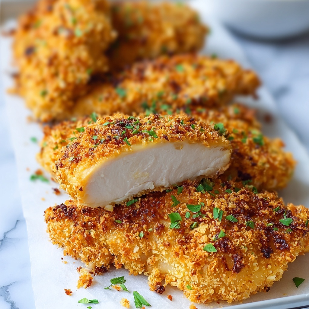 • For extra flavor, marinate chicken in buttermilk and spices before breading if time permits.
