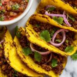 These Crispy Ground Beef Tacos feature seasoned ground beef layered with melted cheese inside crisped corn tortillas. Perfectly balanced with enchilada sauce and taco seasoning, these tacos are baked until golden and crunchy, delivering an irresistible Mexican-inspired meal that’s simple to prepare and ideal for a family dinner or casual gathering.