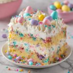 Celebrate Easter with this vibrant and fun Easter Poke Cake, featuring a colorful marbled white cake infused with creamy vanilla pudding and topped with whipped cream and festive sprinkles or Easter candy. Perfect for spring gatherings, this cake combines moist texture and sweet flavors with an eye-catching presentation.