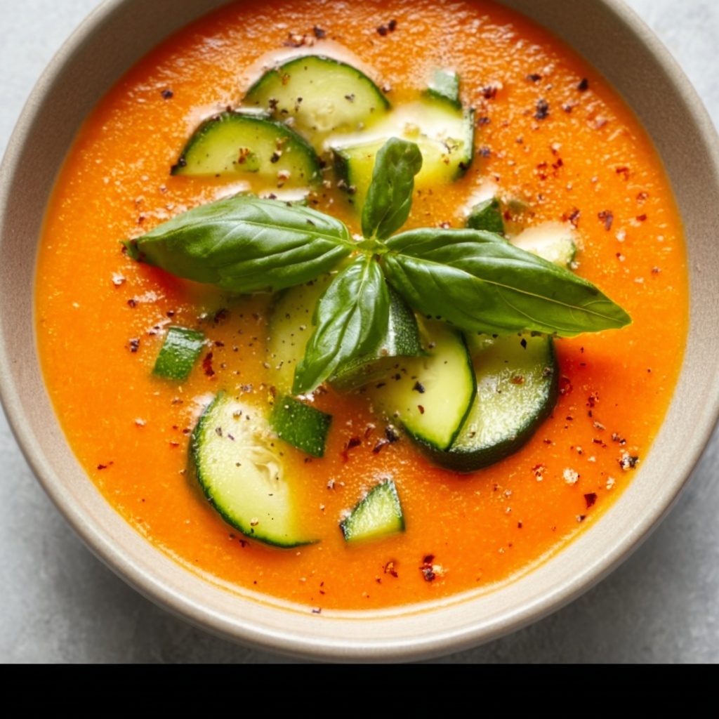 Fresh herbs are your best friends here. While basil is classic, try experimenting with a little chopped parsley or cilantro for a twist. A drizzle of extra virgin olive oil or tiny cubes of cucumber or red pepper add texture and visual appeal too. These simple garnishes turn your bowl of gazpacho into a colorful, gourmet treat.