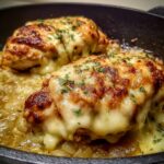 This Easy One Pan French Onion Stuffed Chicken recipe combines caramelized onions and a flavorful cheese blend stuffed inside tender butterflied chicken breasts, all cooked in one skillet for a delicious and effortless meal perfect for weeknight dinners or special occasions.