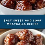 This Easy Sweet and Sour Meatballs recipe features tender, oven-baked meatballs coated in a tangy and sweet homemade sauce. Combining simple pantry ingredients like ground beef, breadcrumbs, and a flavorful mixture of ketchup, rice vinegar, and brown sugar, this dish comes together quickly and is perfect as an appetizer or served over rice or noodles for a satisfying meal.