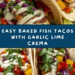 Start by laying a piece of baked fish on each tortilla. Top with thinly sliced purple cabbage for crunch and color, then layer on avocado slices, diced tomatoes if using, red onion, and fresh cilantro. Sprinkle a generous amount of crumbled Cotija cheese over the top. Finally, drizzle the luscious garlic lime crema over everything, ensuring each bite is bursting with vibrancy and creaminess. Serve immediately with lime wedges on the side for that fresh squeeze of citrus that makes the whole dish sing.