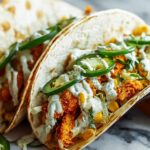 Warm your tortillas until they’re soft and pliable. Spread a generous spoonful of lime crema across each tortilla, layer on the crispy fried chicken, then add a hearty scoop of the creamy street corn mixture. Don’t forget to sprinkle fresh cilantro and crumbled Cotija cheese if you’re feeling fancy, and finish everything with a squeeze of fresh lime juice.