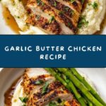 This Garlic Butter Chicken Recipe pairs beautifully with a variety of sides: fluffy mashed potatoes to soak up every drop of sauce, steamed green beans for a crisp, fresh bite, or even a buttery rice pilaf to complement the luxurious flavors.