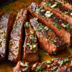 This Garlic Butter Skillet Flank Steak recipe combines a perfectly seared flank steak with a rich garlic herb butter, finished in the oven for ideal doneness. It’s a quick and flavorful main course that’s perfect for any dinner, with fresh herbs enhancing the savory taste.