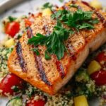 This vibrant Grilled Salmon with Quinoa Salad combines perfectly seasoned, tender salmon fillets grilled to perfection with a refreshing and nutritious quinoa salad packed with fresh vegetables and herbs. Ideal for a healthy, balanced meal that comes together quickly, this recipe balances rich flavors and wholesome ingredients for a satisfying dinner.