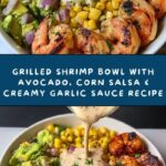 A vibrant and healthy grilled shrimp bowl featuring smoky, perfectly grilled shrimp paired with creamy avocado, fresh corn salsa, and a tangy garlic lime sauce. This Mexican-inspired meal is quick to prepare, packed with flavor, and perfect for a nutritious weeknight dinner.