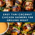 This Grilled Thai Coconut Chicken Skewers Recipe pairs wonderfully with simple sides like fragrant jasmine rice or a crisp cucumber salad tossed with a tangy dressing. You can also offer a peanut dipping sauce on the side for a creamy, nutty complement that brings even more depth to your meal. These sides keep the flavor profile bright and balanced while providing variety on the plate.