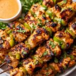 These Grilled Thai Coconut Chicken Skewers feature tender, juicy chicken thighs marinated in a flavorful blend of coconut milk, soy sauce, fish sauce, and aromatic Thai spices. Perfectly charred on the grill and served with fresh cilantro and lime wedges, this dish offers a delicious balance of creamy coconut, tangy lime, and subtle heat that brings authentic Thai BBQ flavors to your table.