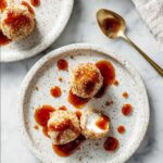 Once baked, carefully transfer the cheese balls to your serving plate and let them cool for a couple of minutes. Now comes the best part: drizzling them generously with honey. This finishing touch brings in sweetness and shine, perfectly complementing the tangy goat cheese and nutty crust for an absolute flavor explosion.
