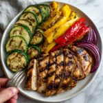 This Honey-Lime Grilled Chicken with Veggies recipe combines juicy, marinated chicken breasts with a zesty honey and lime marinade, perfectly grilled alongside tender bell peppers, zucchini, and red onion. The balanced flavors and quick 45-minute preparation make it an ideal healthy and vibrant meal for any weeknight or weekend BBQ.